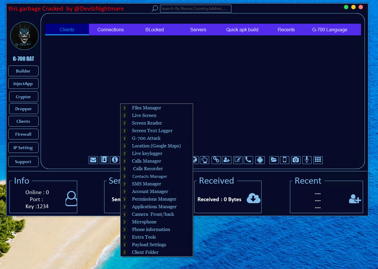 G700: The Next Generation of Craxs RAT This software is pre-cracked and may contain hidden or potentially unsafe components. Do NOT run it on a live or personal machine under any circumstances. If you choose to examine it, use a fully isolated virtual machine (VM). I am not responsible for any misuse, damage, or undisclosed behaviour contained within this software. Proceed with caution.