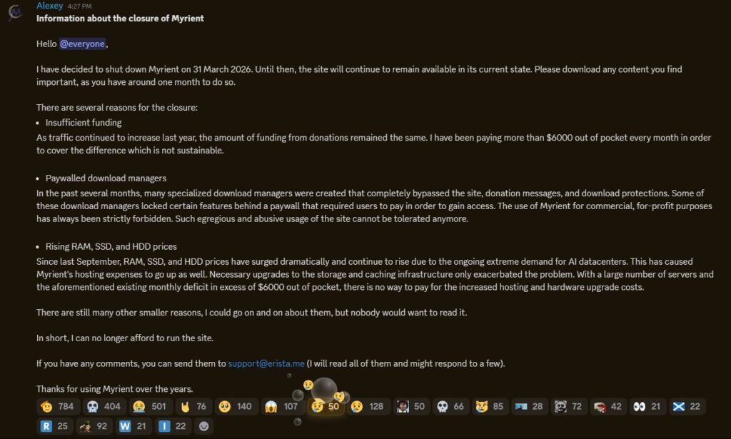 Myrient’s closure represents not only the end of a specific archive, but also a reminder of the operational realities behind large-scale free hosting.