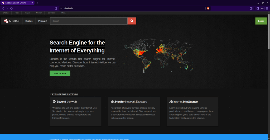 Shodan lets researchers discover exposed devices, services, and infrastructure on the public internet.