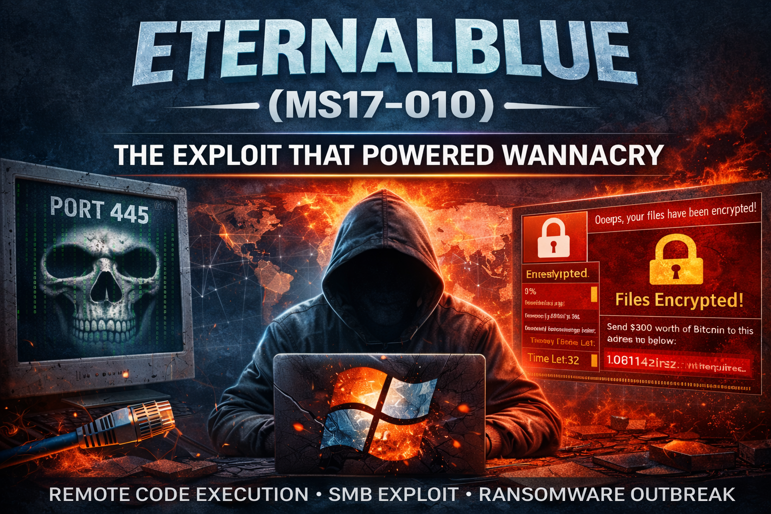 It became globally infamous when it was weaponized by WannaCry, which spread automatically across networks, infecting over 200,000 systems in more than 150 countries within days.